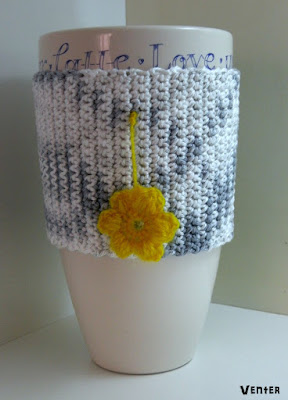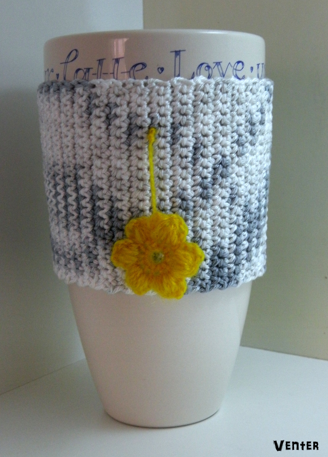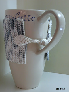 Para elaborar esta funda de taza tejí una banda a punto bajo de 7cm x 22cm.