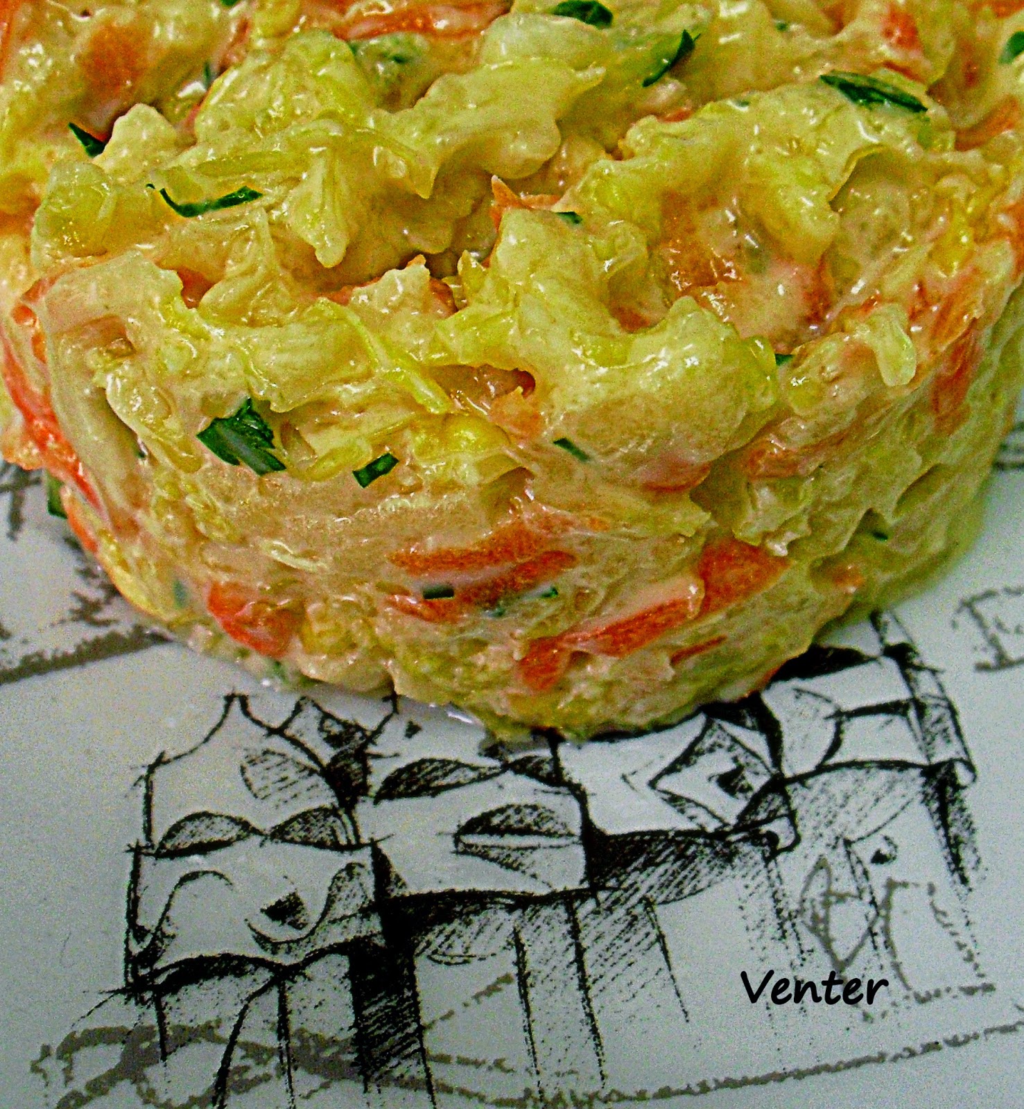 Ingredientes: 1/2 repollo o col, 1 manzana amarilla, 1 zanahoria, 1 yogur natural desnatado, sal, perejil finamente picado.
